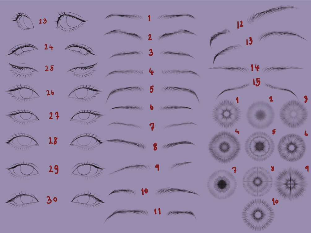 • 55 eyes Stamp brush (30 eyes, 15 eyebrows, 10 irises)